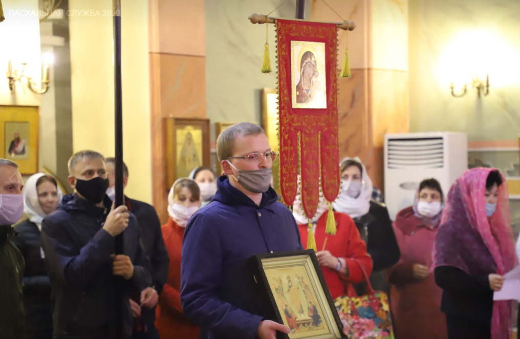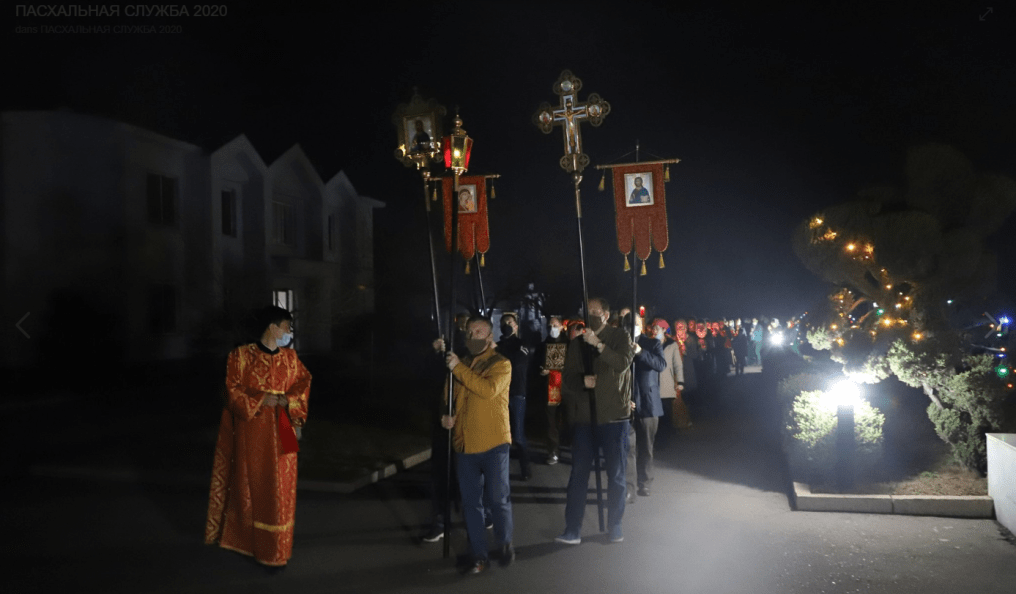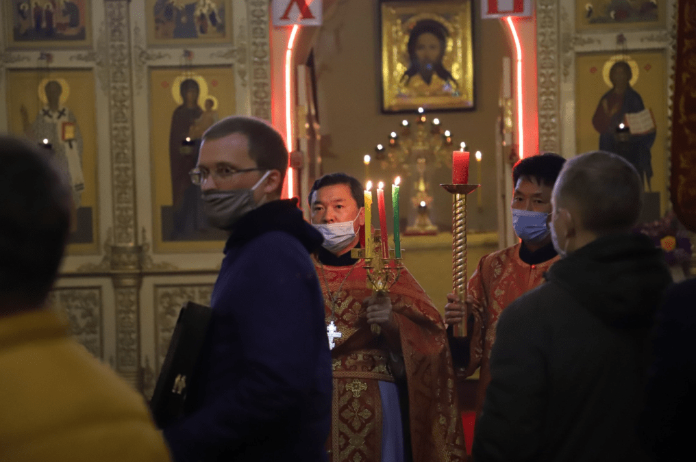 Το Πάσχα είναι η πιο σημαντική, χαρούμενη και αγαπημένη γιορτή ολόκληρου του χριστιανικού κόσμου. Σε αντίθεση με πολλές χώρες όπου, ως μέρος της καταπολέμησης της επιδημίας, οι αρχές επέβαλαν περιορισμούς στις επισκέψεις σ’ εκκλησίες, οι Ορθόδοξοι της Πιονγιάνγκ (προσωπικό της πρεσβείας και μέλη των οικογενειών τους) μπόρεσαν να πάνε στην Αγία Ανάσταση στην με κάθε επισημότητα νυχτερινή λειτουργία. Επιπλέον, παρά την απουσία κρουσμάτων της νόσου και τη σταδιακή χαλάρωση των περιορισμών καραντίνας, τηρήθηκαν όλες οι προφυλάξεις που καθορίστηκαν στη DPRK και συνιστώνται από τη Ρωσική Ορθόδοξη Εκκλησία. Δυστυχώς, φέτος, λόγω του κλεισίματος των συνόρων, για πρώτη φορά στην ιστορία της Εκκλησίας της Αγίας Τριάδας, αδελφοί και αδελφές από τη Μητρόπολη Primorsky δεν ήρθαν σε εμάς, αλλά στην Πασχαλινή προσευχή ενωθήκαμε ψυχικά μαζί τους και με όσους περνούν αυτές τις υπέροχες γιορτές σε απομόνωση, νοσοκομείο και ειδικά με τους γιατρούς και τις νοσοκόμες μας που εργάζονται ανιδιοτελώς στους χώρους εργασίας τους. Μετά την λειτουργία σύμφωνα με τη ρωσική παράδοση, τα κέικ και τα αυγά αφιερώθηκαν στην εκκλησία – για τη χαρά των παιδιών και των ενηλίκων.