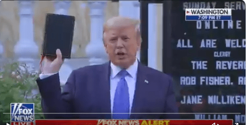 Σήμερα το απόγευμα, ο Πρόεδρος των Ηνωμένων Πολιτειών στάθηκε μπροστά στην Επισκοπική Εκκλησία του Αγίου Ιωάννη, σήκωσε μια Αγία Γραφή και τραβήχτηκαν φωτογραφίες του. Με αυτόν τον τρόπο, χρησιμοποίησε μια εκκλησία και την Αγία Γραφή για κομματικές πολιτικές σκοπιμότητες….
