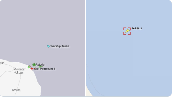 Το τουρκικό φορτηγό πλοίο Parpalı κατευθύνεται προς Misrata.Τώρα εκεί περιπολεί ιταλικό πολεμικό πλοίο..