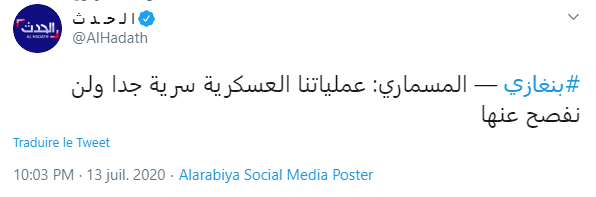 O εκπρόσωπος τύπου του LNA ο Al-Mismari έδωσε πριν λίγο ηχηρή απάντηση στους μιντιακούς προπαγανδιστές Κασσάνδρες της ΜΙΤ που επιχειρούν να διαψεύσουν τα μεγάλα χτυπήματα που δέχεται η Τουρκία στη Λιβύη υπό καθεστώς άκρας μυστικότητας…Σε συνέντευξη τύπου που δίνει τώρα ανέφερε μεταξύ άλλων ο Al-Mismari: οι στρατιωτικές επιχειρήσεις μας είναι άκρως μυστικές και δεν θα τις αποκαλύψουμε αναφέρει το al Hadath..