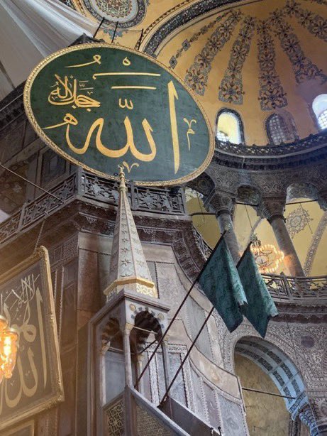 Επίσης ο ίδιος ο Ερντογάν απήγγειλε στίχους του Κορανίου…..Ενώ εξερχόμενος δήλωσε ότι η Αγία Σοφία επέστρεψε στις ρίζες της ξανά έγινε τζαμί και ως τζαμί θα υπηρετεί την πίστη.Ισχυρίστηκε πως 350 χιλιάδες άτομα συμμετείχαν στις προσευχές της Παρασκευής σήμερα στην Αγία Σοφία και στα περίχωρά της..