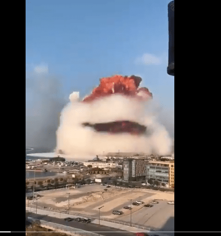 Μοιάζει με πυρηνικό ολοκαύτωμα. Δυο τεράστιες εκρήξεις σημειώθηκαν στο λιμάνι της πρωτεύουσας του Λιβάνου της Βηρυτού και όπως μεταφέρει το AFP επικαλούμενο πηγές ασφαλείας υπάρχουν σύμφωνα με τις πρώτες εκτιμήσεις δεκάδες τραυματίες είναι σίγουρο ότι υπάρχουν και δεκάδες νεκροί..Εικόνα πολέμου εικόνες Αποκάλυψης ως και τα κύμματα τς θάλασσας υψώθηκαν ψηλά πύρινο στεφάνι ωστικό κύμα γιγαντιαίο παντού σκόνη κι αίμα και ερήμωση έχουν όλα σαρωθεί κτίρια αυτοκίνητα άνθρωποι. Ο απολογισμός θα είναι ενδεχομένως πολύ βαρύς..Tην Τρίτη από τις εκρήξεις, θρυμματίστηκαν τα παράθυρα κτιρίων σε μεγάλη απόσταση ένας εκκωφαντικός θόρυβος ακούστηκε και ένα πύρινο σύννεφο μαζί με καπνό υψώθηκε στον ουρανό..Η έντονη έκρηξη στην περιοχή του λιμανιού της Βηρυτού έγινε αισθητή σε πολλά μέρη της πόλης..Άγνωστα τα αίτια των εκρήξεων. Σύμφωνα με το rt την πρώτη έκρηξη ακολούθησε 2η κοντά στο σημείο που έγινε η 1η.