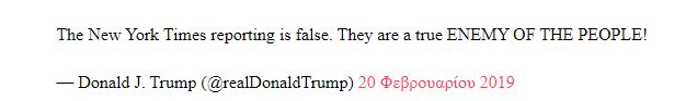 *ενώ το 2019 στο παραλήρημά του είχε ορίσει ως εχθρό του λαού ως κι το New York Times…σύνδρομο καταδίωξης….
