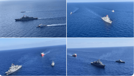 Το τούρκικο Υπ. Άμυνας πριν λίγο ανακοίνωσε και τεκμηριώνει με φωτογραφίες ότι η φρεγάτα”TCG KEMALREİS (που ενέχεται στην επακούμβηση) συμμετέχει στην επιχείρηση Ασπίδα Μεσογείου συνοδεύοντας το ερευνητικό μας πλοίο BARBAROS HAYRETTİN PAŞA, μετά από ναυτική εκπαίδευση με τα πλοία της ακτοφυλακής της Τούρκικης Δημοκρατίας της Β Κύπρου (ψευδοκράτος) στ΄ανατολικά της νήσου Κύπρου στη Μεσόγειο”.