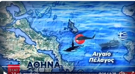 ”Σύμφωνα με πληροφορίες, τουρκικό υποβρύχιο εντοπίστηκε όχι μια, αλλά πάνω από τρεις φορές, από φρεγάτα και ελικόπτερο του ελληνικού πολεμικού ναυτικού στο στενό μεταξύ Εύβοιας και Σκύρου. Ο διοικητής του υποβρυχίου, επιχείρησε να αλλάξει θέση, αλλά από τα σόναρς του ελληνικού πολεμικού ναυτικού, εντοπίστηκε ξανά το στίγμα του.”