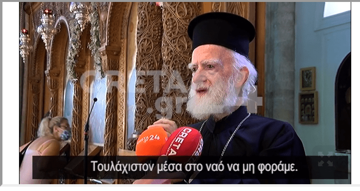 Το πρωί της Τρίτης ο Αρχιεπίσκοπος Κρήτης Ειρηναίος κατά το κήρυγμά του στη σημερινή θεία λειτουργία για τον εορτασμό του Αγίου Τίτου στο Ηράκλειο, χαρακτήρισε επικίνδυνες τις μάσκες και κάλεσε τους πιστούς να μην τις φορούν.