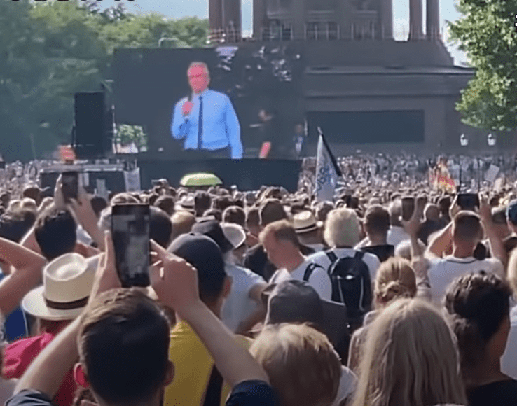 Κοιτάζω αυτό το πλήθος , βλέπω όλες τις σημαίες της Ευρώπης , βλέπω άτομα κάθε χρώματος βλέπω άτομα κάθε έθνους και θρησκείας , όλοι ανήσυχοι για την ανθρώπινη αξιοπρέπεια για την υγεία των παιδιών και την πολιτική ελευθερία.Αυτό είναι το αντίθετο του ναζισμού…Οι κυβερνήσεις αγαπούν τις πανδημίες..Κι αγαπούν τις πανδημίες για τον ίδιο λόγο που αυτές αγαπούν τον πόλεμο.Γιατί τους δίνουν την δυνατότητα να επιβάλουν στον πληθυσμό ελέγχους που αλλιώς αυτός δεν θα τους δεχόταν ποτέ . Δημιούργησαν θεσμούς και μηχανισμούς για να επιβάλουν την υποταγή. Θα σας πω ένα πράγμα αυτό είναι μυστήριο για εμένα . Όλες αυτές οι εξέχουσες προσωπικότητες όπως Bill Gates,Anthony Fauci σχεδίασαν και σκέφτηκαν επ΄αυτής της πανδημίας εδώ και δεκαετίες τη σχεδίασαν με τέτοιο τρόπο ώστε εμείς όλοι να είμαστε ασφαλείς όταν αυτή η πανδημία θα γίνει και τώρα που αυτή έφθασε δεν ξέρουν περί τίνος μιλούν κι φαίνεται πως αυτοί επινοούν καθ΄οδόν και (στο μέτρο) ενσωματώνουν ανύπαρκτους αριθμούς και δεν είναι σε θέση να σας πουν ποιο είναι το ποσοστό θνησιμότητας του covid19.Δεν μπορούν να μας δώσουν ένα τεστ PCR που να λειτουργεί πραγματικά. Aυτοί οφείλουν συνεχώς να τροποποιούν τον ορισμό του covid στο πιστοποιητικό του θανάτου για να εμφανίζεται αυτός ολοένα και πιο θανατηφόρος. Το μόνο τους χάρισμα είναι να τροφοδοτούν τον φόβο.