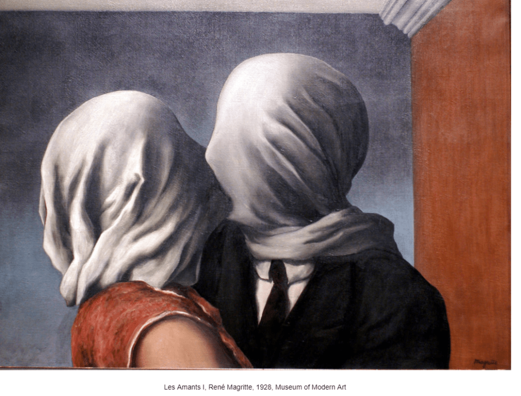 Ο μετα-covid19 κόσμος είναι αυτός ο εφιάλτης που πρόβλεψε ο René Magritte..Καλυμμένα πρόσωπα…Το έργο ”οι Εραστές” είναι ένας σουρεαλιστικός πίνακας του Βέλγου εικαστικού René Magritte, τον οποίο φιλοτέχνησε στο Παρίσι το 1928.Eίναι μέρος της σειράς ”Les Amants” που αποτελείται από 4 ομώνυμους πίνακες (I έως IV).