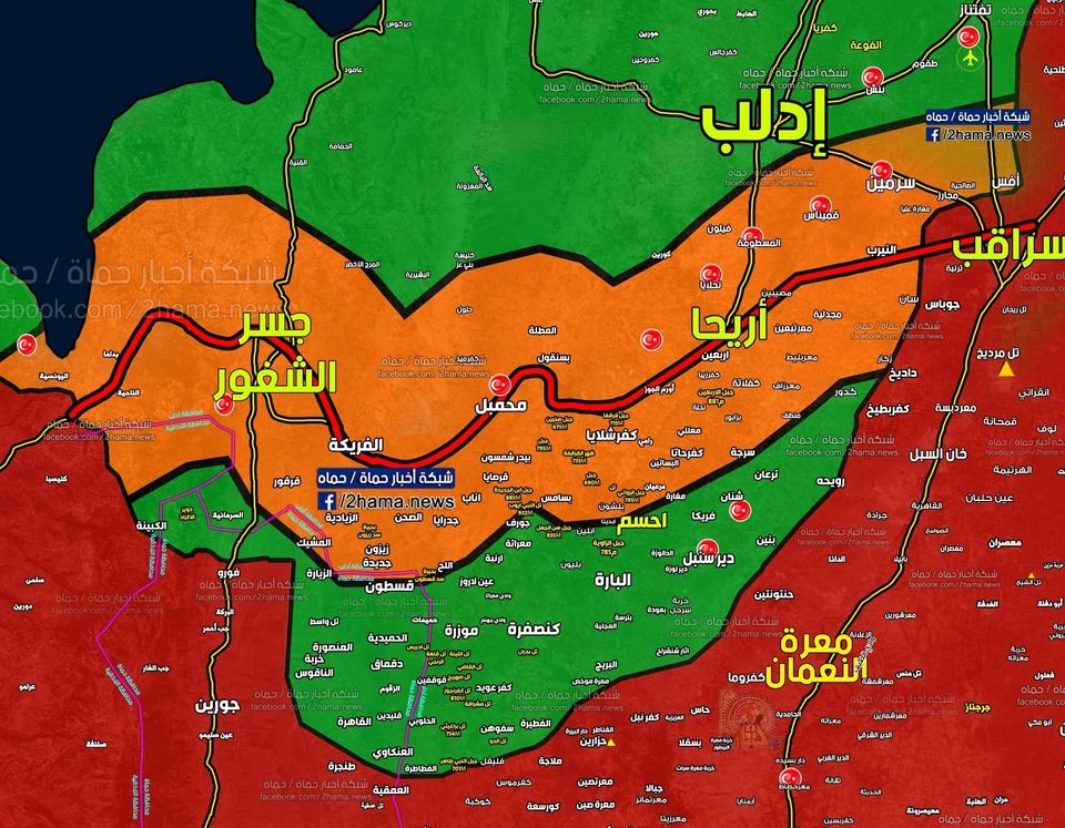 Ο συριακός στρατός βάλει με βαρύ πυροβολικό θέσεις τουρκικού στρατού στην περιοχή του Jisr Al Shugur, ενώ η ρωσική αεροπορία βομβαρδίζει θέσεις φιλότουρκων τρομοκρατών στην ευρύτερη περιοχή του Idlib.Βίαιες συγκρούσεις σήμερα πλησίον του M4 αφού η Τουρκία εγκατέστησε και νέα βάση στην Αφρίνη κι αυτό έδωσε το τελικό εύνασμα...