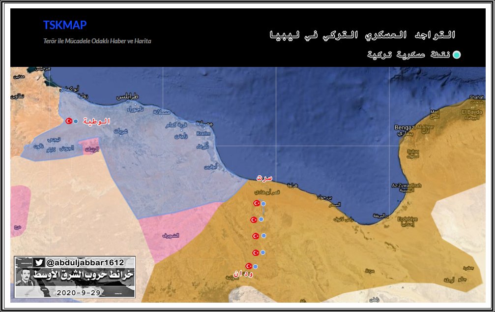 Η στρατιωτική παρουσία στη Λιβύη αυτή τη στιγμή περιλαμβάνει 5 παρατηρητήρια του τούρκικου στρατού μεταξύ Σύρτης και Dan, συν τη βάση Al Watiya. Αυτά θα ξηλωθούν προφανώς αν ισχύουν τα προαναφερθέντα…..