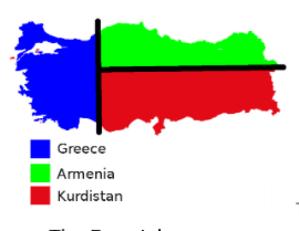 Σύμφωνα με διαρροή Top secret και non paper θα παρακολουθήσουμε μια νέα κατάτμηση της Τουρκίας ! 3 κράτη, ένα κούρδικο, ένα αρμένικο κι ένα τούρκικο . Kάθε σημερινός πολίτης ή εξόριστος ,διωκόμενος (αυτοεξόριστος) μπορεί να επιλέξει να είναι πολίτης του κράτους που αυτός θέλει και προβλέπει επομένως ένα δικαίωμα επιστροφής για τους Έλληνες (στις πατρογονικές τους εστίες).. ..στην πραγματικότητα αυτό είναι μια εφαρμογή της Συνθήκης Σεβρών!
