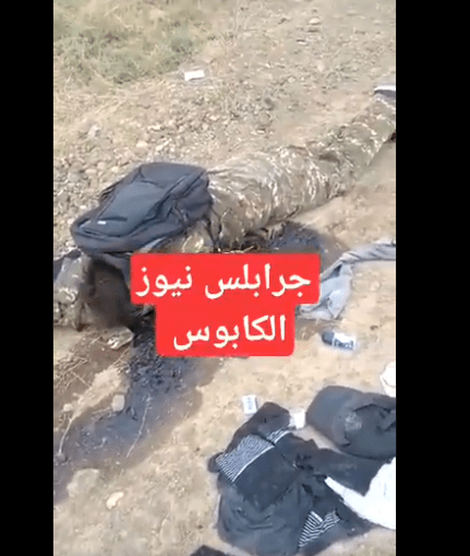 Εμφανίζονται πολλά βίντεο από το Ναγκόρνο Καραμπάχ όπου σε αραβοσυριακή διάλεκτο Σύριοι τρομοκράτες μισθοφόροι της Τουρκίας από το Ιντλίμπ καθυβρίζουν τις σωρούς Αρμένιων στρατιωτών αφού τους σκότωσαν. Ο τρομοκράτης φιλότουρκος τζιχαντιστής βεβηλώνει τους νεκρούς λέγοντας: ”γουρούνια του Αρμένικου στρατού”….