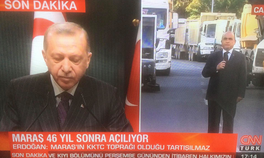 Σύμφωνα με δημοσίευμα της ΚΑΘΗΜΕΡΙΝΗΣ Κύπρου ”Τρέχουν οι εξελίξεις για το Βαρώσι, αφού επιβεβαιώθηκαν οι πληροφορίες για άνοιγμα του παραλιακού μετώπου. Σε δηλώσεις τους ο Τούρκος πρόεδρος Ταγίπ Ερντογάν και λεγόμενος πρωθυπουγός των Κατεχομένων Ερσίν Τατάρ ανέφεραν ότι την Πέμπτη το κοινό θα μπορεί να επισκεφθεί τις περιοχές που θα ανοίξουν.”