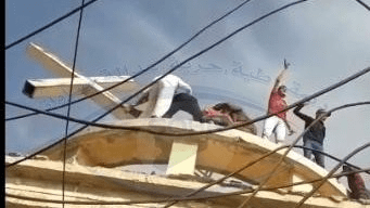 Ένα βίντεο ντοκουμεντάρει τη στιγμή που φανατικοί διαδηλωτές υποκινούμενοι από φονταμενταλισμό Ερντογάν που διαμαρτύρονται κατά της Γαλλίας για τις καρικατούρες του Charlie Hebdo έριξαν το μεγάλο σταυρό της ελληνορθόδοξης εκκλησίας των Αγίων Σεργίου και Βάκχου στην πόλη Tabqa. Ο σταυρός ήταν άθικτος παρά το γεγονός ότι ο ναός είναι μισογκρεμισμένος από την ISIS..H επίθεση έγινε μετά την προσευχή της Παρασκευής.Τα στίφη μανιασμένων φανατικών ισλαμιστών μετά την αντιγαλλική διαδήλωση κατευθύνθηκαν στον ελληνορθόδοξο ναό και γκρέμισαν το σταυρό του τρούλου. Η πόλη Tabqa κοντά στη Raqqa μια πόλη που ελέγχεται από τις κούρδικες “Syrian Democratic Forces”…Η Περιφερειακή Διοίκηση της Tabqa υπό την αυτόνομη διοίκηση της ΒΑ Συρίας υπό κουρδικό έλεγχο είχε σηκώσει τον σταυρό σε αυτήν την εκκλησία που καταστράφηκε από την ISIS για να ενθαρρύνει τους Χριστιανούς να επιστρέψουν.