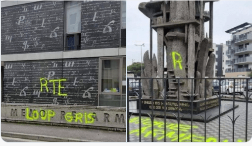 Συνθήματα « N**** Arménie » « RTE Loups Gris-Γκρίζοι Λύκοι » (RTE= Recep Tayip Erdogan) εμφανίστηκαν στους τοίχους του Κέντρου και στο μνημείο.