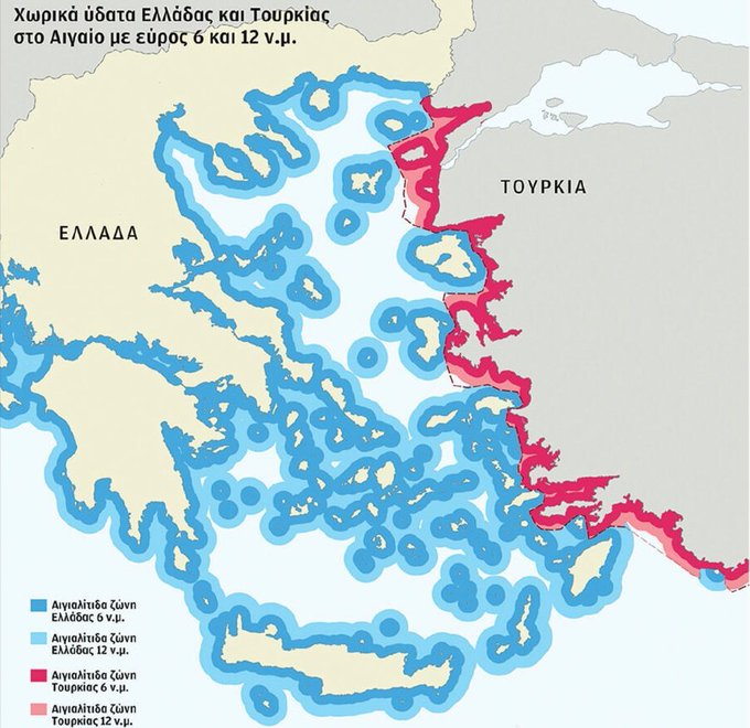 Πριν από λίγο ανεξάρτητη ελληνική δημοσιογραφική πηγή από Βρυξέλλες δηλώνει σε Breaking ότι η Ελλάδα ανακοίνωσε επίσημα ότι θα προβεί σ΄επέκταση 12 ναυτικών μιλίων από έξι μίλια, σε όλα τα χωρικά της ύδατά ,από όλα τα νησιά και από την ηπειρωτική χώρα. Διευκρινίζει ότι αφορά και το Ανατολικό Αιγαίο.Λέει ότι πρέπει να περάσει πρώτα από το κοινοβούλιο. Αλλά είναι πιθανό να περάσει.