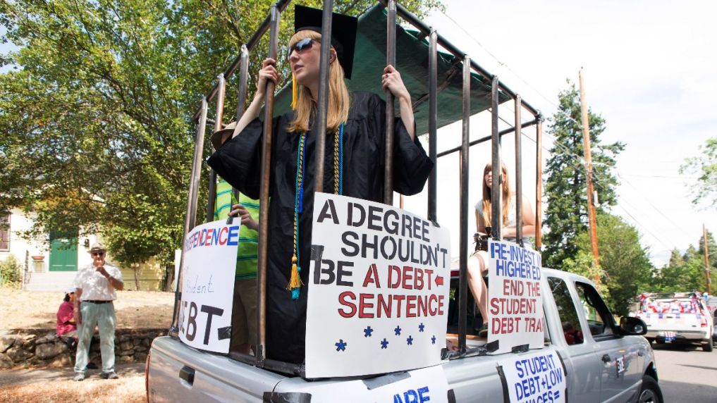 Οι Αμερικανοί έχουν επί του παρόντος 1,6 τρισεκατομμύρια δολάρια-$1,600,000,000,000 σε φοιτητικό χρέος – ένα τεράστιο ποσό που σημαίνει ότι εκατομμύρια άνθρωποι έχουν τελματώσει να πληρώνουν φοιτητικά δάνεια αντί να επιδίδονται και να επενδύουν σε αυτά που σηματοδοτούν την έναρξη της ενήλικης ζωής, όπως η προκαταβολή για σπίτι ή αυτοκίνητο. Ενώ λάνσαραν το κολέγιο σε νέους Αμερικανούς ως εγγύηση για ένα ευτυχισμένο μέλλον μεσαίας τάξης αντίθετα έχει παραδώσει νέους πτυχιούχους στην αγκαλιά αδίστακτων ιδιωτικών δανείων και του δια βίου χρέους που είναι αδύνατο να αποπληρωθεί.
