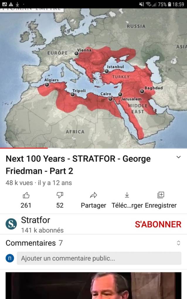 Στο 01:23 ο George Friedman ξεκινά να μιλάει για την Τουρκία. Στο 02:25 εμφανίζεται πλήρως ο ζητούμενος χάρτης.