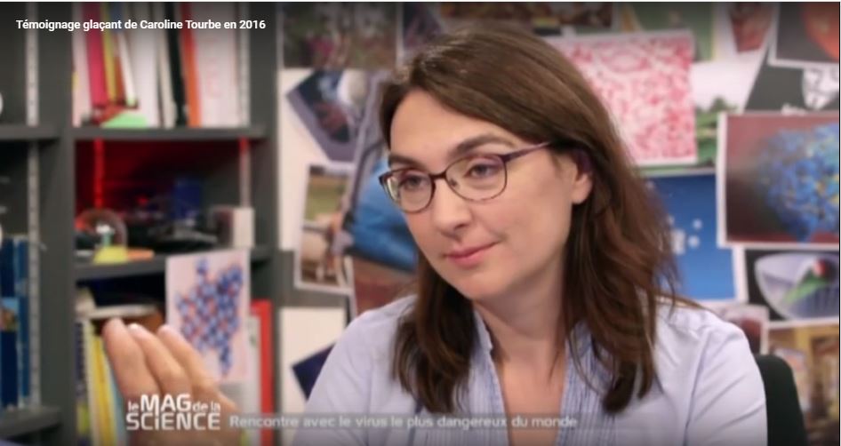 Caroline Tourbe: «Nαι, υπάρχει το P4 που είναι ένα εργαστήριο , υπάρχουν 2 στη Γαλλία και μια χούφτα σε ολόκληρον τον κόσμο, το P4 είναι ασφαλές στο maximum. Για Ebola,για π.χ. Το P3, αυτό είναι λίγο λιγότερο ασφαλές.»