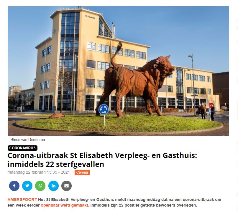 Το γεγονός είναι ότι ο αριθμός των ασθενών με κορωνοϊό δεν ήταν ποτέ μεγαλύτερος σε αυτό το γηροκομείο απ ‘ότι από τότε που εμβολιάστηκαν οι τρόφιμοί του. Στο συγκεκριμένο γηροκομείο στο Amersfoort, 22 από τους 70 ασθενείς που βρέθηκαν θετικοί μετά τον εμβολιασμό πέθαναν, ήτοι ένα ποσοστό μεγαλύτερο από 30%.