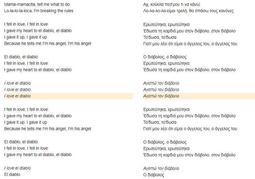 ΥΓ. δεν είναι μόνο ο τίτλος όλο το τραγόδι είναι ένας Ύμνος Αγάπης .. στο Διάβολο ….