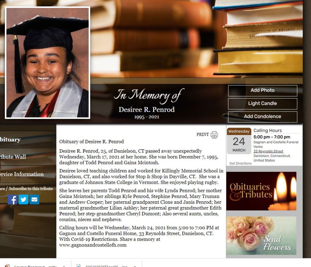 Νεκρή 25χρονη εκπαιδευτικός στις ΗΠΑ μετά τον εμβολιασμό της ενώ πληθαίνουν οι πιέσεις για εμβολιασμό εκπαιδευτικών στην Ελλάδα!!!Η 25χρονη εκπαιδευτικός Desirée Penrod πέθανε στο Connecticut στις ΗΠΑ μία εβδομάδα μετά τον εμβολιασμό της με το Johnson & Johnson.