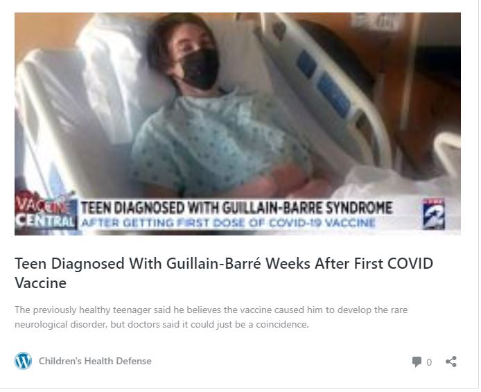 Θα συνεχίσουμε να παρακολουθούμε τις πολλές περιπτώσεις που το CDC λέει ότι διερευνά, συμπεριλαμβανομένης της διάγνωσης του GBS από τον McGlaun.childrenshealthdefense/ cogiito.com/reseauinternational 8.4.21