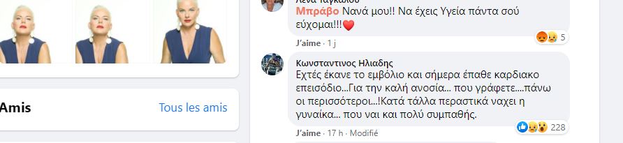 Στο fb της εύχονται περαστικά ενώ το σχόλιο που σάρωσε ήταν αυτό: