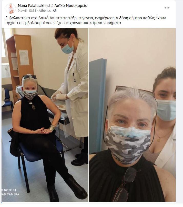 Σύμφωνα με το medlabnews.gr iatrikanea ”Νανά Παλαιτσάκη: Σε κρίσιμη κατάσταση στο νοσοκομείο μια ημέρα μετά τον εμβολιασμό της”.