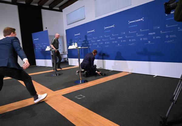 Ο Søren Brostrøm, διευθυντής του Εθνικού Συμβουλίου Υγείας, μίλησε επίσης στη συνέντευξη τύπου. Μετά από ένα διάλειμμα εξαιτίας της λιποθυμίας της Tanja Erichsen, μίλησε ηχογραφημένα..