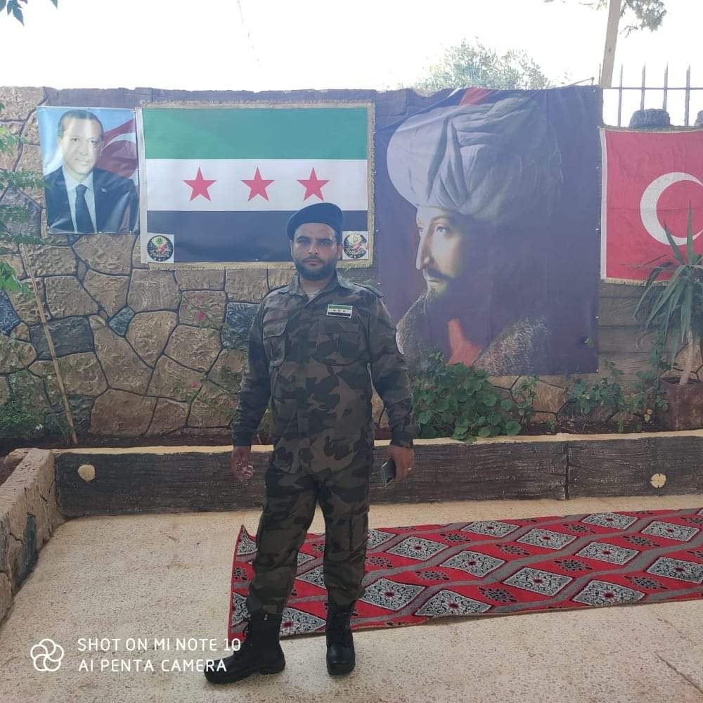 Αυτή είναι η σημαία της συριακής αντιπολίτευσης που κυμάτισε στην Αθήνα στη Λέσβο και στην ελληνική διπλωματία για 10 χρόνια κατά του Άσαντ. Αποφασίστε στο συριακό είστε με Ερντογάν ή Άσαντ είστε με τούρκικο επεκτατισμό όπως και η Δύση;;;;;Γιατί αν το ελληνικό κράτος ευνόηση το νεοθωμανικό επεκτατισμό αυτό είναι θέμα μείζονος σημασίας για την εθνική ασφάλεια και τηνε εσωτερική ασφάλεια αφού η γιγάντωση της Τουρκίας και η αποθράσυνση της στρέφεται εις βάρος των εθνικών μας συμφερόντων και θα την βρούμε μπροστά μας όπως και την βρήκαμε ενισχυμένη με Γαλάζια Πατρίδα στο Αιγαίο στο κυπριακό στην Αν Μεσόγειο στο ενεργειακό στη Θράκη. Μετά το συριακό η Τουρκία μπήκε στη Λιβύη και έκανε την περίφημες ΑΟΖ κλπ .Εδώ ένας διοικητής από τη φατρία του Σουλτάνου Σουλεϊμάν Σάχ του «Εθνικού Στρατού της Συρίας» (FSA) στο Σεΐχ αλ-Χαντίντ, στα κατεχόμενα της Αφρίν, ποζάρει μπροστά από τον Ερντογάν, την τουρκική σημαία και τον Μωάμεθ τον Πορθητή. (Αξίζει να σημειωθεί ότι ο διοικητής είναι Άραβας της Συρίας, όχι Τούρκος.)