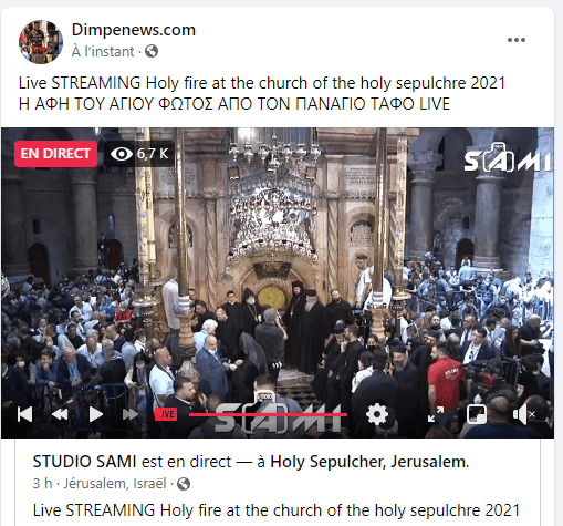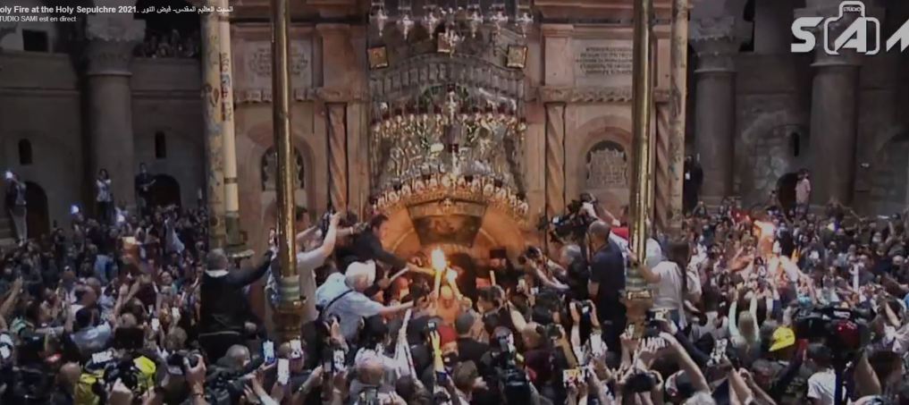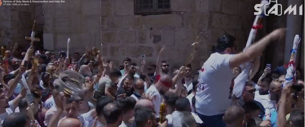 Zωντανά από τον Πανάγιο Τάφο στην Ιερουσαλήμ η Αφή του Αγίου Φωτός..με τύμπανα με κρουστά μ΄αλαλαγμούς οι Άραβες χριστιανοί Ορθόδοξοι εν χορδαίς κι οργάνοις δημιουργούν εκρηκτική ατμόσφαιρα εν αναμονή του θείου θαύματος της Ανάστασης.Με τουμπερλέκια και ντέφια έχει στηθεί πανηγύρι στο Ναό της Αναστάσεως….με συνθήματα. Η Ορθοδοξία είναι τρέλα κι όποιος αντέξει ως το τέλος η Ορθοδοξία είναι ευλογημένη τρέλα στην παραφροσύνη των Ημερών .Μη συμβατική κι Ασυμβίβαστη… Να τη πετιέται ..
