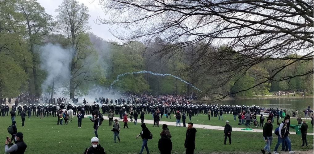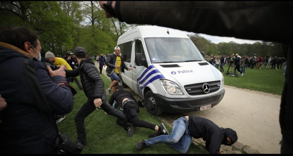 Διαρκής Εξέγερση στις Βρυξέλλες..Συγκρούσεις σώμα με σώμα. Στρατοκρατούμενες οι Βρυξέλλες. Αρένα τα πάρκα της, οι συγκρούσεις μεταφέρθηκαν στις γειτονιές της πρωτεύουσας. Επιχείρηση εκκαθάρισης μιας εκδήλωσης κατά υγειονομικών μέτρων στην καρδιά των Βρυξελλών εξελίχθηκε σε πραγματική μάχη. Την 1η Μαίου στο τέλος του απογεύματος οι αστυνομικές αρχές εκκένωσαν δια της βίας μια απαγορευμένη συγκέντρωση στο πάρκο των Βρυξελλών. Μια διαταγή διάλυσης δόθηκε πριν τις 18 h μμ με πρόσχημα ότι δεν τηρήθηκαν ανακοίνωσε η αστυνομία των Βρυξελλών.Οι αστυνομικοί μπήκαν στο πάρκο αρένα κατά χιλιάδες επιτέθηκαν με αντλίες νερού και δακρυγόνα. Για σφαγή στο πάρκο bois de la Cambre στις Bruxelles κάνουν λόγο αυτόπτες κατά του γιορτής boum-2