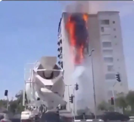 Kαταιγίδα ρουκετών στο Τελ Αβίβ. Επλήγη πολυόροφο κτίριο και έχει λαμπαδιάσει. Διαμαρτυρίες Ισραηλινών ότι τα μέσα δεν τους λένε όλη την αλήθεια κι αναφέρουν ότι η κατάσταση είναι κρίσιμη στο Ισραήλ..Σκηνές καταστροφής.. Γάζα έγινε το Τελ Αβίβ…Τουλάχιστον 1 νεκρός από ρουκέτα σε Ramat Gan προάστιο του Τελ Αβίβ σύμφωνα με JP.Πολλά σπίτια στο Ισραήλ έχουν πληγεί από τις χιλιάδες ρουκέτες που έχoυν εκτοξεύσει οι Παλαιστίνιοι στο Ισραήλ από την κλιμάκωση των εχθροπραξιών τη Δευτέρα.Παράλληλα μεταφέρονται συγκρούσεις ένοπλες σε πολλές πόλεις του Ισραήλ εμφύλιος.