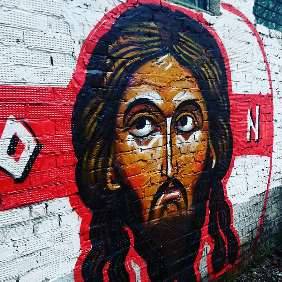 Παραφράζοντας τον Άλμπερτ Καμύ η Ορθοδοξία και η τέχνη θα πεθάνουν μαζί ή ο Χριστός στη Μόσχα…Ο Alexandr Tsypkov ένας νεαρός ταλαντούχος καλλιτέχνης γκράφιτι ιστορεί εικόνες στους τοίχους της Μόσχας. Ο φύλακας των Τειχών ”Guardian of the Walls” αλά ρώσικα…..ή ο χώρος φυλάσσεται είναι υπό επιτήρηση θεία επιτήρηση!