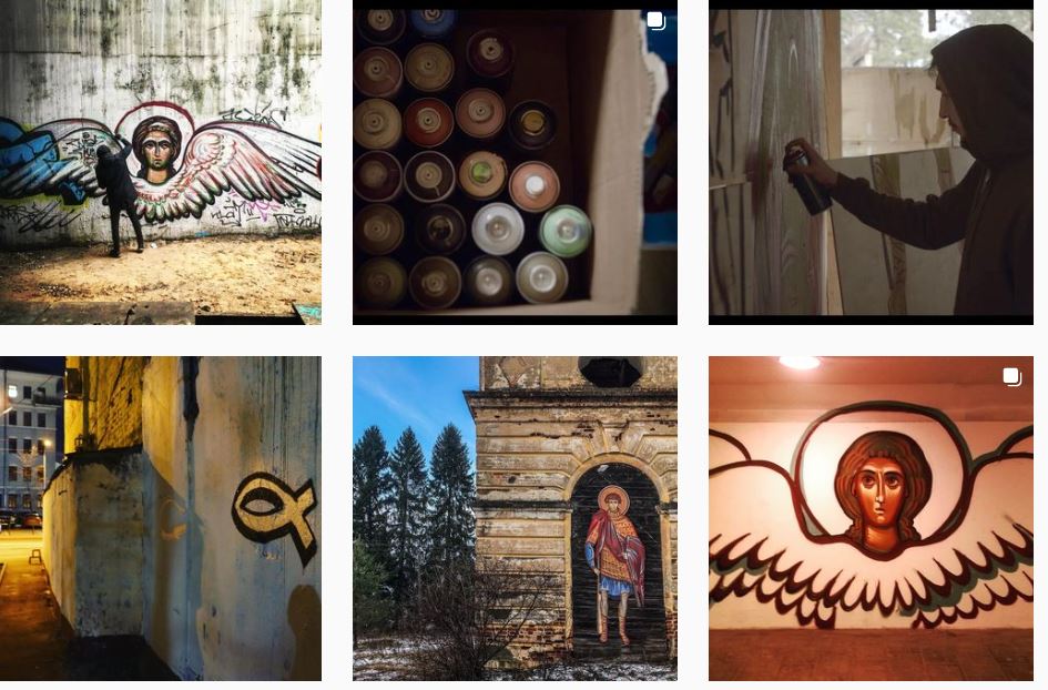 Μέλος της συλλογικότητας των καλλιτεχνών “After Icon”, με τη βοήθεια τριών συνεργατών εξωραΐζει την πόλη της Μόσχας με σπρέι …που βγάζουν φωτιές. Ο Alexandr Tsypkov είναι αγιογράφος. Ωστόσο μετά τη δουλειά του, φοράει τα ρούχα του γκραφιτά και βγαίνει στο δρόμο στο δρόμο με ό, τι χρειάζεται.