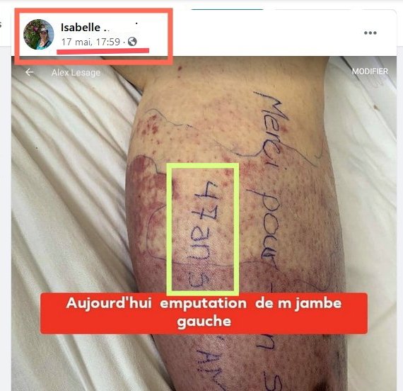 τα παιδιά της έγραψαν μια μικρή σημείωση αγάπης, δημοσιεύτηκε στον τοίχο. Η Isabelle βρίσκεται στο νοσοκομείο και εξακολουθεί να γράφει στο Facebook ότι αυτές είναι «οι παρενέργειες του εμβολίου.» Δεν γνωρίζουμε ποιο είναι το εμβόλιο. Αλλά οι συγγενείς του φαίνονται έκπληκτοι και πάνω απ ‘όλα αηδιασμένοι “H αιτία είναι το εμβόλιο πες μου ότι δεν είναι αλήθεια, σκατά”. της γράφει σε σχόλιο μια συγγενής της..Τους ενημερώνει ότι ” είναι οι δευτερογενείς συνέπειες από το εμβόλιο του covid19”
