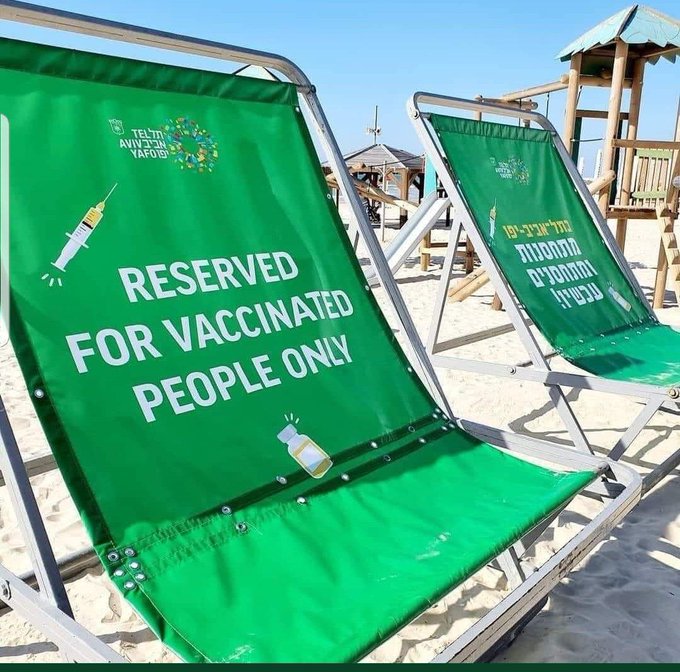 Στη φωτογραφία παραλία του Τελ Αβίβ καθώς άνοιξε η θερινή σεζόν με σεζλόνγκ μόνο για εμβολιασμένους βέβαια μετά την κατακραυγή αποσύρθηκαν ..,.κι αυτά τον έφαγαν..