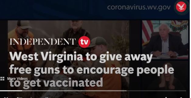 Η Πολιτεία της Δυτικής Βιρτζίνια προσφέρει δωρεάν όπλα στους πολίτες για να τους ενθαρρύνει να εμβολιαστούν. Τα υγιή κίνητρα των Υγειονομικοκρατών είναι προφανή!!!Eπίσης τρέχει πρόγραμμα εξαγοράς συνειδήσεων με λαχειοφόρους που κληρώνουν από απλά σάντουιτς για πεινασμένουςκαι δωροκάρτες ως υποτροφίες για παιδιά που εμβολιάζονται και αμύθητα ποσά.. Νοθεία.. ο εμβολιασμός κατά συνείδηση τείνει πλέον να είναι ισχνή μειοψηφία…Καλώς ήρθατε στην παράνοια!!!!