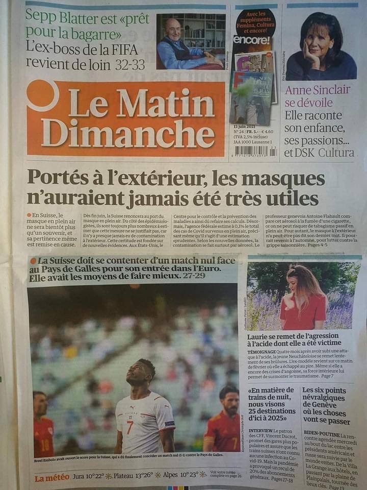 Ανασκευάζουν…Οι μάσκες έπεσαν…Στην Ελβετία τέλος οι μάσκες σ΄εξωτερικό χώρο από τέλος Ιούνη! ”Το να τις φοράς στο εξωτερικό οι μάσκες ποτέ δεν ήταν πολύ χρήσιμες” γράφει σε πρωτοσέλιδο η ελβετική εφημερίδα Le Matin Dimanche.Στην Ελβετία η μάσκα στον εξωτερικό χώρο θα είναι σήμερα ένα σουβενίρ. Από την πλευρά των επιδημιολόγων αυτοί είναι πάντα πολυάριθμοι που εκτιμούν ότι αυτό το μέτρο δεν δικαιολογούνταν γιατί σχεδόν ποτέ δεν υπήρξε μόλυνση στο εξωτερικό χώρο.Αυτή η βεβαιότητα είναι θεμελιωμένη σε νέες αποδείξεις.Στις ΗΠΑ το Κέντρο για την Πρόληψη Ασθενειών ξαναέκανε τους υπολογισμούς του.Έκτοτε η ομοσπονδιακή υπηρεσία εκτιμά ότι μόλις το 0,1% του συνολικού κρουσμάτων covid19 επήλθαν σε εξωτερικό χώρο διευκρινίζοντας πως είναι μια προσεκτική εκτίμηση.Ο καθηγητής από τη Γενεύη Antoine Flahault συγκρίνει αυτό το αεροζόλ με το καπνό ενός τσιγάρου ή δεν μπορεί να κινδυνεύσει από παθητικό κάπνισμα κανείς σε εξωτερικό χώρο.. Ωστόσο η μάσκα μπορεί να επανέλθει στους εξωτερικούς χώρους το φθινόπωρο για καταπολέμηση εποχικής γρίπης.