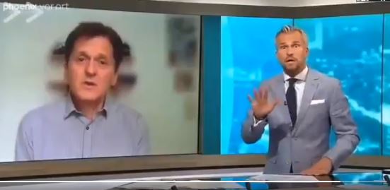Σημείωση CG: Στο λεπτό 6:16 – 6:20, ο συντονιστής του Phoenix δείχνει εκνευρισμένος, κουνώντας τα χέρια και με τα μάτια του ορθάνοιχτα. Κάποιος μπορεί να υποθέσει ότι οι αντιδράσεις του προέρχονται μόνο εάν ο επιδημιολόγος Klaus Stöhr μπορεί να είπε kάτι πάρα πολύ «ανεπιθύμητο» για τη γραμμή εκπομπής σχετικά με, σύμφωνα με τον Stöhr, τον υψηλότερο κίνδυνο εμβολιασμού παιδιών και εφήβων σε σχέση με τον χαμηλότερο κίνδυνο ασθένειας ….