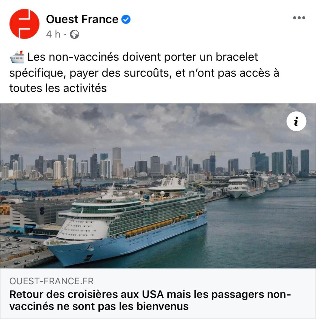 Στις Ηνωμένες Πολιτείες, οι κρουαζιέρες συνεχίζονται, αλλά οι μη εμβολιασμένοι επιβάτες δεν είναι ευπρόσδεκτοι ακόμη κι αν είναι παιδιά. Με μπρασελέ οι μη εμβολιασμένοι σε κρουαζιέρα στις ΗΠΑ αν αν και στην πλειοψηφία τους είναι παιδιά! Ψυχολογικό πείραμα από high tech-Ku Klux Klan!!