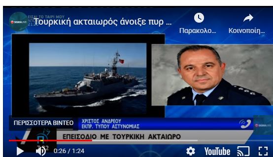4 μέρες πριν την θλιβερή επέτειο της τούρκικης εισβολής στην Κύπρο και την εισβολή Ερτνογάν που αναμένεται στην Αμμόχωστο θερμό επεισόδιο καθώς ”Τουρκική ακταιωρός άνοιξε πυρ εναντίον σκάφους του λιμενικού της Κύπρου στην ακριτική περιοχή της Τηλλυρίας.