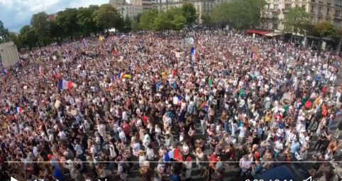 Nέες μεγάλες κινητοποιήσεις και σήμερα στη Γαλλία κι ανά τον κόσμο. Στη Γαλλία διαδηλώσεις έγινα σε όλη τη χώρα περίπου τις 200 είχαν ανακοινωθεί σε Παρίσι, Τουλόν, Λίλ, Valence,Montpellier, Nice, Lyon,Rochelle , Στρασβούργο κ.α Από 3 σημεία προσυγκεντρώσεων ξεχύθηκαν εκατοντάδες χιλιάδες διαδηλωτές κατά της υγειονομικής δικτατορίας για να πλημμυρίσουν τη γαλλική πρωτεύουσα. Trocadero, place Bastille,place Invalides.Στην τελευταία συγκεντρώθηκαν οι Gilets Jaunes.Yπήρξαν σποραδικά επεισόδια,δακρυγόνα, γκλομπ,χειροβομβίδες κρότου λάμψης flashball ,τραυματισμοί συγκρούσεις KATAΣΤΟΛΗ….Λίβανος η Γαλλία ,χάος στα στρατόπεδα συγκέντρωσης πειραματικού εμβολιασμού. Το Παρίσι έχι καταλυθεί μόνο ο Μακρόν με τη δύναμη όπλων μένει στην εξουσία..ΕΝΑ ΟΙΚΟΔΟΜΙΚΟ ΤΕΤΡΑΓΩΝΟ ΕΛΕΓΧΕΙ Ο ΜΑΚΡΟΝ/ΦΥΡΕΡ ΣΤΑ ΗΛΥΣΙΑ ΠΕΔΙΑ κι αυτό δίνει μάχες με τους πραιτοριανούς του να το κρατήσει. Δίνει ψεύτικα νούμερα την ώρα που το Παρίσι έχει καταλυθεί και οι διαδηλωτές έχουν καταλάβει όλη την πόλη.. 161 000 κατά του pass sanitaire σε όλη τη Γαλλία εκ των οποίων 11 000 στο Παρίσι. αν μετράνε έτσι και τα κρούσματα τότε έχει λήξει προ πολλού…Μάλλον μπέρδεψαν το Παρίσι με τη Νίκαια που βούλιαξε επίσης από κόσμο.