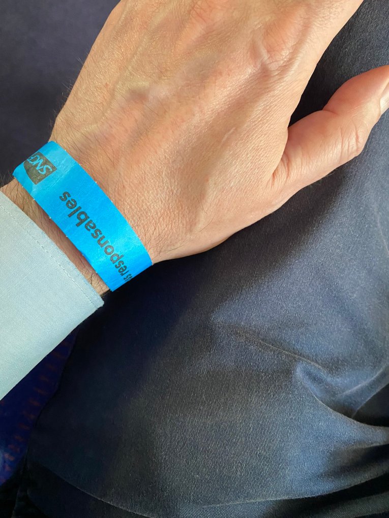 Σε κάποιους σταθμούς σιδηροδρομικούς του Παρισιού κυρίως σε αυτόν του Gare de Lyon, οι επιβάτες που είχαν στην κατοχή τους ένα έγκυροι υγειονομικό πάσο μαρκαρίστηκαν ως κρατούμενοι μ΄ένα μπασελέ γαλάζιο από τους ελεγκτές..ΠΛΗΡΗΣ ΝΑΖΙΣΜΟΣ O ναζισμός ήταν το μόνο πολιτικό σύστημα που βασίστηκε στη βιολογία κι έκανε επιστημονικά ”θαύματα” στον ευγονισμό!! Από το κίτρινο άστρο στο γαλάζιο βραχιόλι!!!