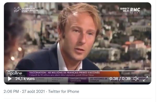 Ο Martin Blachier λέει το «υγειονομικό πάσο είναι εντελώς ηλίθιο»,στο πρόγραμμα Apolline Matin στο RMC Story αυτήν την Παρασκευή, 27 Αυγούστου. Σύμφωνα με τον ίδιο, αυτό το μέτρο που θέσπισε η κυβέρνηση είναι πραγματική «αίρεση».