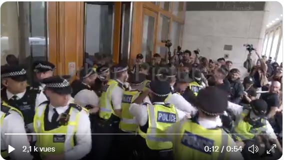 Μάχες σώμα με σώμα για εισβολή στη Ρυθμιστική Υπηρεσία Φαρμάκων MHRA στο κτιριακό συγκρότημα Canary Wharf στο Λονδίνο 3/09/2021.Οι διαδηλωτές εναντιώνονται κατά του ”εμβολιασμού” παιδιών με τα σκευάσματα. H Aρχή θ΄αποφάσιζε για τους εμβολιασμούς παιδιών 12-15 ετών.Η αποφασιστικότητα των διαδηλωτών και η γενικότερη εναντίωση της κοινής γνώμης απέφεραν αποτέλεσμα καθώς η Επιτροπή τελικά απέρριψε τον εμβολιασμό παιδιών ηλικίας 12-15..