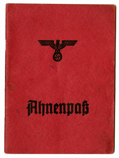 Ahnenpass: το “passeport généalogique”-“γενεαλογικό διαβατήριο” δημιούργημα του Γ’ Ράιχ απόδειξη του ”ανήκειν” στην Άρια φυλή, προαπαιτούμενο για να διαθέτεις επίσημα έγγραφα, κάρτα προμήθειας για δημοσιοϋπαλληλική καριέρα κλπ!!! Άνευ αυτού ήσουν ένα κοινωνικό απόβλητο καταδικασμένος σε γκετοποίηση χωρίς δικαίωμα εργασίας βιοπορισμού στάτους πολίτη….