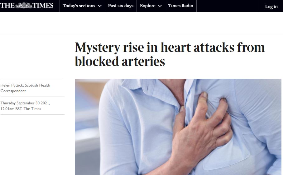Επιδημία ανακοπής καρδιάς μέσα στο καλοκαίρι στη Σκωτία…..Υπάρχει συσχέτιση έστω και μερική με μαζικό εμβολιασμό;; Το γεγονός ότι το υγειονομικό σύστημα παραμέλησε ασθενείς άλλων κατηγοριών λόγω μονοπώλιου covid19 εξηγεί σ’ ένα βαθμό αυτή τη νέα επιδημία;;Tα συνεχή lockdown και οι νέες συνθήκες αδρανοποιημένης ζωής συνέβαλε και κατά πόσο;; Eνδιαφέρον παρουσιάζει να παρακολουθήσει κανείς και ποιές ηλικιακές ομάδες πλήττει αυτή η καινοφανής επιδημία…