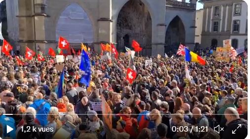 Ανταποκρινόμενοι στο κάλεσμα από την “Aktionsbündnis Urkantone” (“Συμμαχία των πρωτόγονων καντονιών”) και την ένωση “Freie Linke Schweiz” (“η ελεύθερη αριστερά της Ελβετίας”), αρκετές χιλιάδες άνθρωποι συγκεντρώθηκαν το Σάββατο στη Βέρνη για μια πανεθνική διαδήλωση κατά των μέτρων κατά του Covid . Ομιλίες κατά του νόμου Covid, έγιναν στην Ομοσπονδιακή Πλατεία, γεμάτη κόσμο. Οι ομιλητές εξέφρασαν κυρίως την άρνησή τους για το δελτίο υγείας/υγειονομικό πάσο, δηλώσεις που επιδοκιμάστηκαν από το πλήθος.